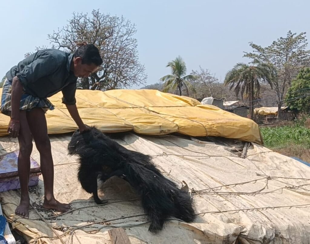 अवैध रूप से जंगली भालू का शिकार कर उसकी खाल की तस्करी करने वाले आरोपियों के विरुद्ध गोण्डाहूर पुलिस की बड़ी कार्यवाही।आरोपियों के कब्जे से जंगली भालू की खाल एवं शिकार में उपयोग की गई सामग्री बरामद। वन्य जीव संरक्षण अधिनियम के तहत 11 आरोपियों के विरुद्ध अपराध पंजीबद्ध कर कार्यवाही की गई।गिरफ्तार आरोपियों का विवरण:– 1. रामसू मण्डावी, पिता स्व. सुखदेव मण्डावी, उम्र 59 वर्ष, निवासी कुरूशबोडी स्कूलपारा। 2. कोसिया कुमार मण्डावी, पिता रामसू मण्डावी, उम्र 18 वर्ष, निवासी कुरूशबोडी स्कूलपारा। 3. केसो राम गावडे, पिता सोमा राम गावडे, उम्र 45 वर्ष, निवासी ग्राम ढोरकट्टा। 4. गैंदसाय गावडे, पिता स्व. सोनूराम गावडे, उम्र 40 वर्ष, निवासी ग्राम ढोरकट्टा। 5. केसरी गावडे, पिता स्व. मनकेर गावडे, उम्र 45 वर्ष, निवासी ग्राम ढोरकट्टा। 6. सोनिया पद्दा, पिता दामजी पद्दा, उम्र 32 वर्ष, निवासी ग्राम ढोरकट्टा। 7. बाबुराम, पिता आसुराम गावडे, उम्र 21 वर्ष, निवासी ग्राम ढोरकट्टा। 8. हलसू गावडे, पिता सनकु गावडे, उम्र 40 वर्ष, निवासी ग्राम ढोरकट्टा। 9. राकेश नरेटी, पिता सुकराम नरेटी, उम्र 22 वर्ष, निवासी ग्राम ढोरकट्टा। 10. तुलसी राम गावडे, पिता स्व. बासूराम गावडे, उम्र 26 वर्ष, निवासी ग्राम ढोरकट्टा। 11. बुजेश गावडे, पिता केसरी गावडे, उम्र 21 वर्ष, निवासी ग्राम ढोरकट्टा।बरामद सामग्री एक नग जंगली भालू की खाल (कीमत लगभग ₹1,00,000/-)। • एक मोटरसाइकिल क्रमांक CG-19/BQ-3181 (कीमत लगभग ₹15,000/-)। • भालू के शिकार में प्रयुक्त 05 नग जाल, 01 छुरी एवं 01 कुल्हाड़ी। मामले का संक्षिप्त विवरणदिनांक 11.03.2026 को थाना गोण्डाहूर पुलिस को बीट भ्रमण एवं अपराध सूचना संकलन के दौरान मुखबिर से सूचना प्राप्त हुई कि कुछ व्यक्तियों द्वारा अवैध रूप से जंगली भालू का शिकार कर उसकी खाल की तस्करी की जा रही है।सूचना की गंभीरता को देखते हुए श्री निखिल अशोक राखेचा (भापुसे), पुलिस अधीक्षक उत्तर बस्तर कांकेर के निर्देशानुसार तथा राकेश कुर्रे, अतिरिक्त पुलिस अधीक्षक पखांजूर के मार्गदर्शन एवं रविकुमार कुजूर, अनुविभागीय अधिकारी पुलिस पखांजूर के पर्यवेक्षण में थाना प्रभारी गोण्डाहूर निरीक्षक योगेश कुमार सोनी के नेतृत्व में पुलिस टीम गठित कर तत्काल कार्यवाही की गई।पुलिस टीम द्वारा ग्राम कुरूशबोडी में आरोपी रामसू मण्डावी के लाड़ी (खेत मकान) में दबिश दी गई, जहां से एक जंगली भालू की खाल सूखे हुए अवस्था में बरामद की गई। पूछताछ एवं आरोपी केसो राम गावडे के कथन के आधार पर अन्य आरोपियों की संलिप्तता सामने आई।जांच में यह पाया गया कि आरोपियों ने ग्राम ढोरकट्टा एवं हलांजूर के बीच जंगल में जंगली भालू का शिकार किया, उसके बाद उसे केसो राम के खेत स्थित लाड़ी में लाकर काटा, मांस पकाकर खाया तथा खाल को सुखाकर बिक्री 